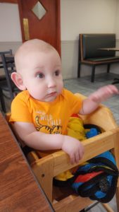 Ty had his appointment. She was surprised when I said he had RSV she said he just looked like he had a little cold. She said that if he gets it after hes one he might get it a lot worse than this time because he w ont have my immunities to help him or something. I dont know she sounded smart haha. He is now 9 months old, 19 lbs, and 27 inches long.