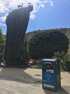 a pak me jeste bavi socha, kterou pouzivaji jako varovani na odpadkovych kosich: Split te vzdycky vidi!