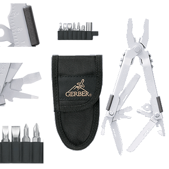 About 5 minutes later he puts a Gerber pouch in my lap. (For those of you non-redneck people…Gerber makes knives and multi-tools similar to leathermans…let me find a picture)
