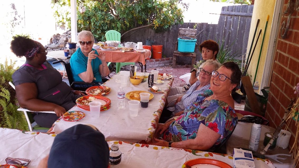 We were family, inner circle, and Pam’s roommate, an exchange student from Japan who had never had a Thanksgiving meal before. The food was really good, the turkey was moist, and desert pushed me over the top. It was a happy bunch until Poolie fell. She couldn’t get up again.