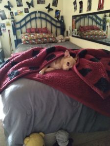 Steps up to your bed is wonderful for him. He seems to like snuggling in a blanket just like I do. Smart dog. Thanks for sharing. 😎