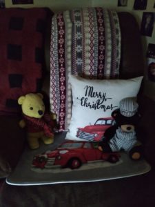 Right now, I am listening to a podcast on my telly….I was trying to tell my mum what a podcast is….I don’t know if she really understood it….I did take some pics of my room for Christmas I was telling my mum I was going to take it all down on Sunday and she went into the Oooo that’s bad luck to take it down before New Years lol silly….Like I got a ton of good luck right now?