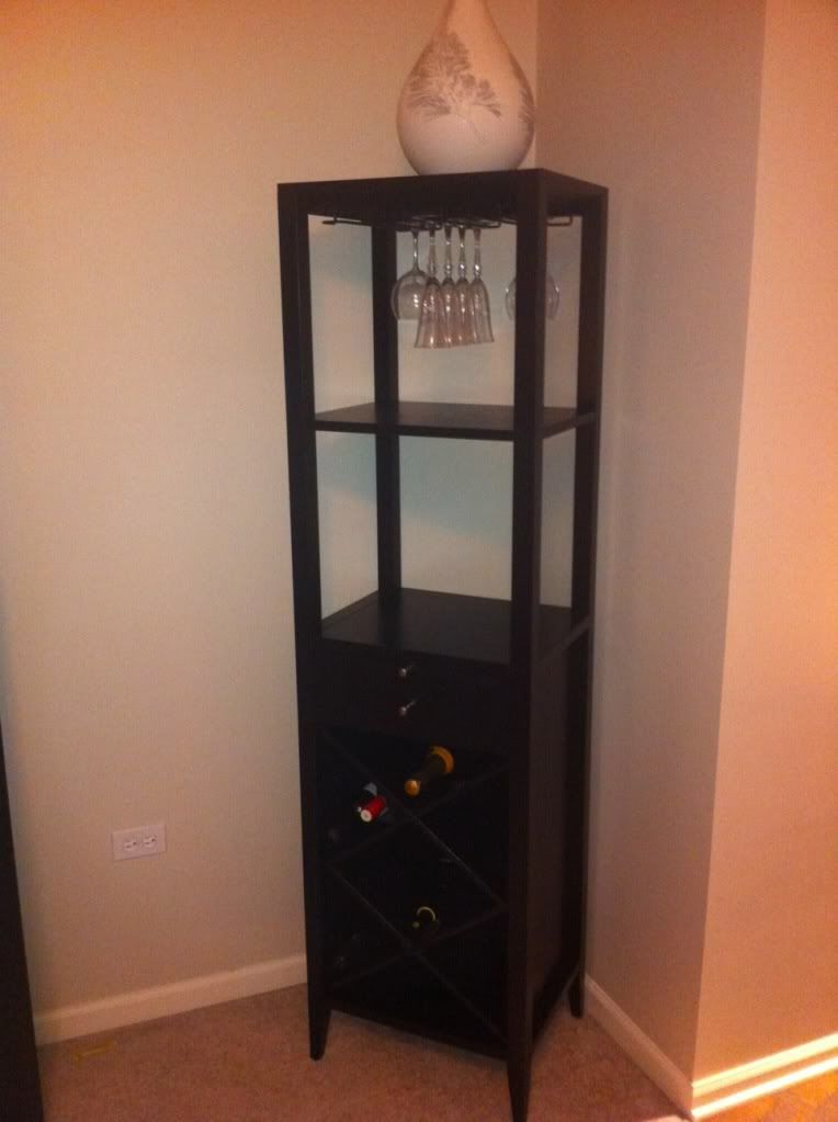 P was so sick last week that we really didn’t even see each other so we spent all day Saturday (after he worked several hours in the morning while I unpacked and organized) together hanging out and running errands. We had lunch at this new burger place called Meatheads. Then we bought this cool new wine rack. The shadowing makes it sort of hard to see but there is a ton of space for wine on the bottom half.
