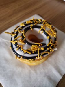 As I mentioned in my last entry, I managed to avoid the office for most of the day on Thursday. That was not accidental. I meant to steer clear of the place entirely, as to not be around my coworkers, many of whom I don’t care for. Per my usual, I returned to the office yesterday morning at just before 4:45am. I found that doughnut at my desk. I couldn’t tell you who left it there or when they dropped it off, but there it was. To my surprise, it hadn’t petrified overnight, which I took to mean that it was indeed still very much edible. Being that I don’t like to see food go to waste, even with my current and medication-induced lack of appetite, I decided to add it to my breakfast regimen. Normally, my breakfast consists of some kind of energy drink and a protein bar. Today, I chased that protein bar with that doughnut. As far as donuts go, this wasn’t a particularly good doughnut, but it was free. If there’s one thing I learned in college, it was that there’s no such thing as bad free food. Yesterday’s breakfast would power me for six-plus hours.