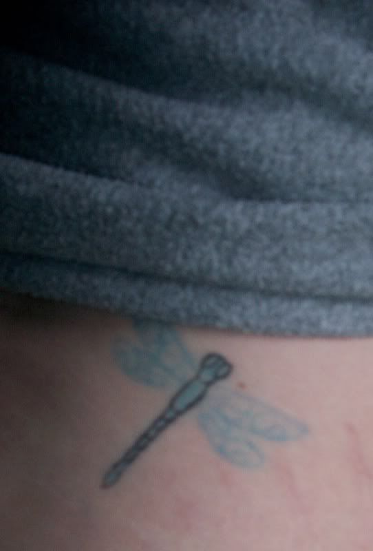 I love the dragonfly! I have a gecko on my lower back! I love all my tattys and can’t wait to get more. I wish I had loads of mula so I could get tons and tons of them! I’m watching Degrassi tonight, I can’t wait to see who dies (okay, how morbid did I just sound?!).