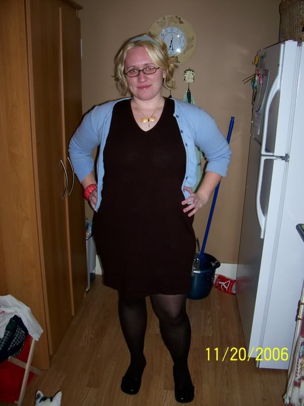 whatever is a girl to do? keep trying? give up? i tried to find a hooded shirt for under the dress but i didn’t have quite the right thing. isn’t that always the way? something is always missing for me. it’s usually the shoes but here it’s the shoes, the top, the body, the dress… *sighs*
