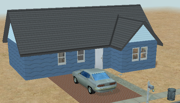 My prefab house. I have to be in a mood to make a house. I just did it up fancy… and my simself built that car herself. ++ mech points.